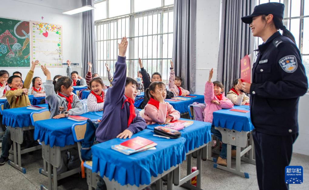12月3日,在安徽省蕪湖市繁昌區孫村鎮中心小學,民警為小學生講解憲法知識。