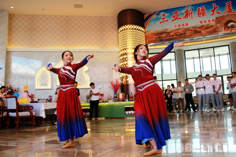 圖為新疆代表團(tuán)在駐地海南三亞新疆大廈精心準(zhǔn)備聯(lián)誼活動(dòng) 攝影:劉莉
