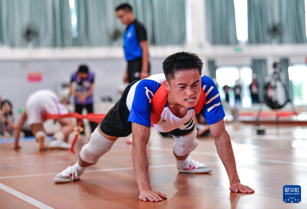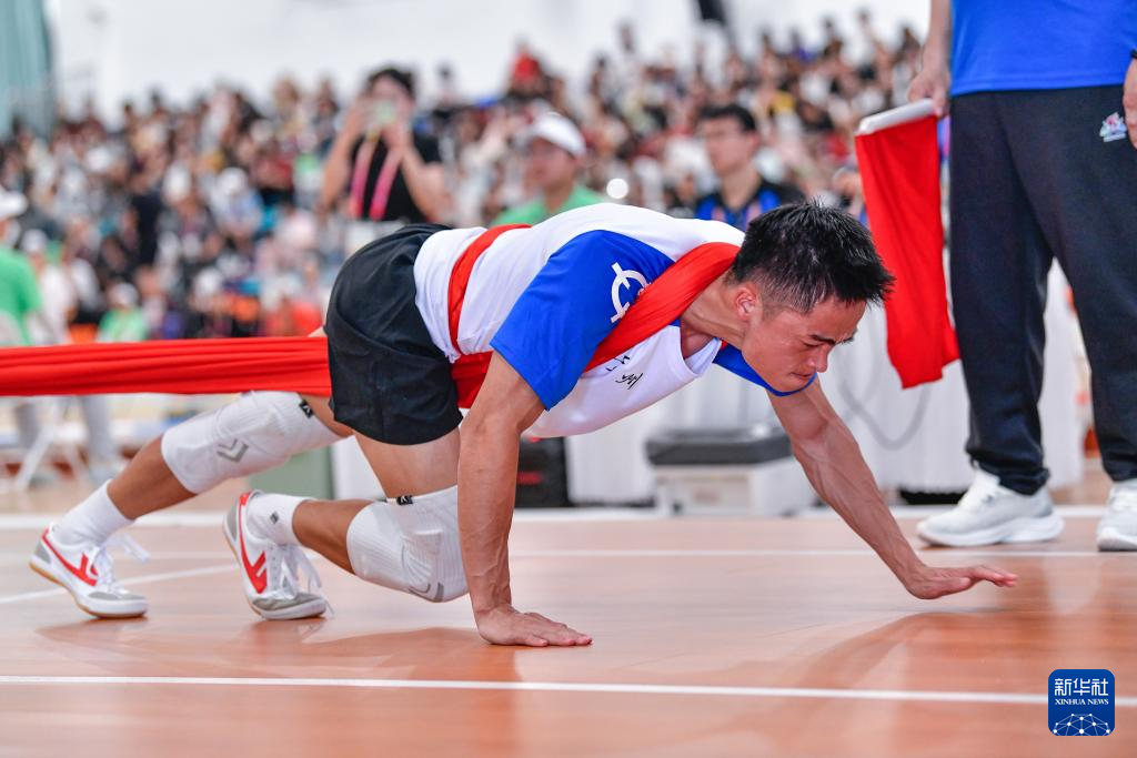當日,第十二屆全國少數民族傳統體育運動會押加55公斤級四分之一決賽在海南三亞舉行。