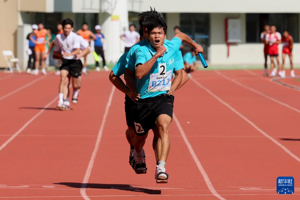 當(dāng)日,第十二屆全國少數(shù)民族傳統(tǒng)體育運動會板鞋競速男子2x100米接力復(fù)賽在海南省三亞市舉行。