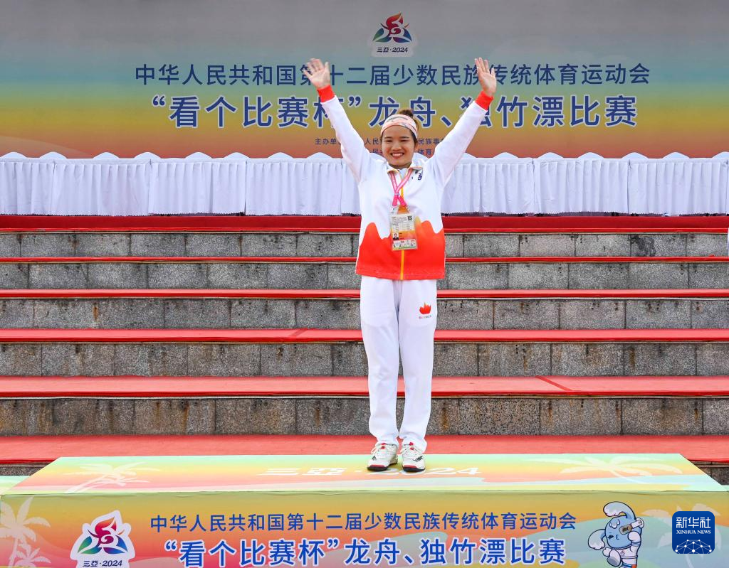 當日,第十二屆全國少數民族傳統體育運動會女子組(獨竹漂)100米直道賽在海南省三亞市舉行。