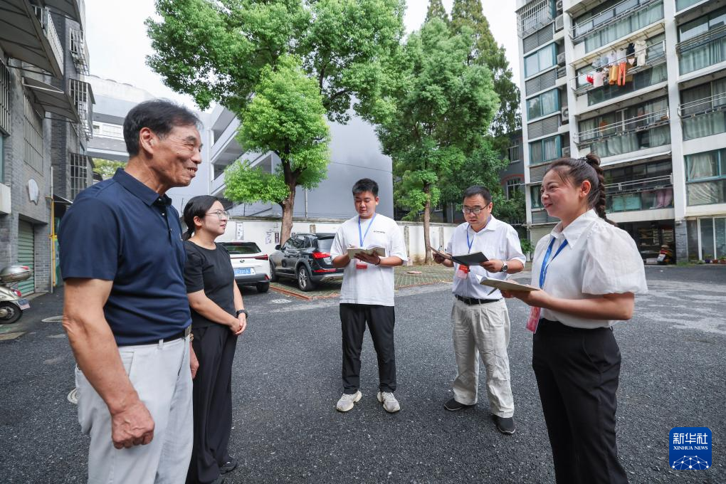 9月11日,湖州吳興區人大代表(右一、右二)和飛英街道議政員(右三)及塔下街社區工作人員在社區停車場聽取居民關于“停車難”問題的反饋,并征集相關意見建議。新華社記者 徐昱 攝