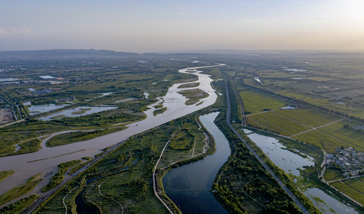 這是8月23日在寧夏吳忠市利通區拍攝的黃河(無人機照片)。新華社記者 楊植森 攝
