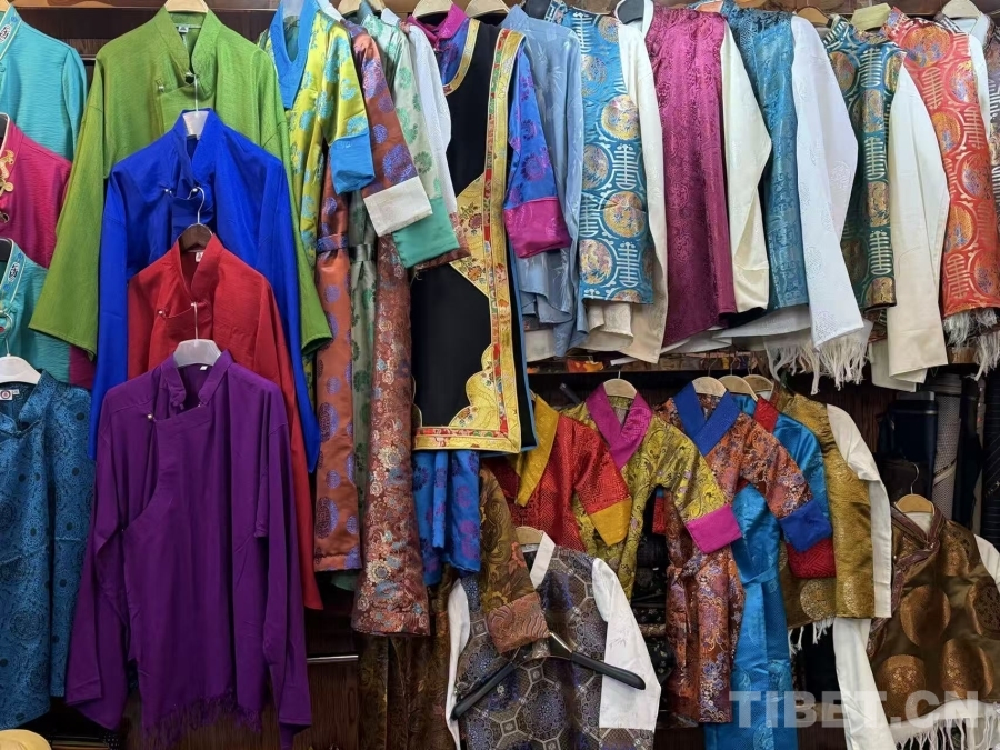 “我們這一排商鋪現在幾乎都在經營藏裝,因為這里靠近轉經道,人流量一直很大,尤其是前幾年,藏裝銷售一度達到高峰?!鄙淅步榻B,如今盡管市場競爭更加激烈,但傳統藏裝因其文化內涵和節日意義,依然深受群眾喜愛,成為迎接新年不可或缺的重要服飾。
