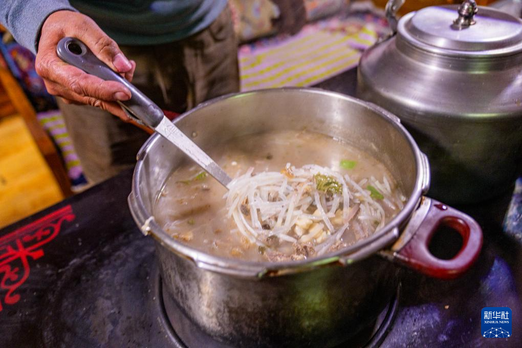 在藏語中,“古”意為“九”,“突”意為“面”,“古突”是一種用牦牛肉湯加入牛肉、蘿卜、奶渣等食材熬煮的面食。按西藏傳統習俗,“古突”夜,家家戶戶迎來團聚,一起享用“古突”。