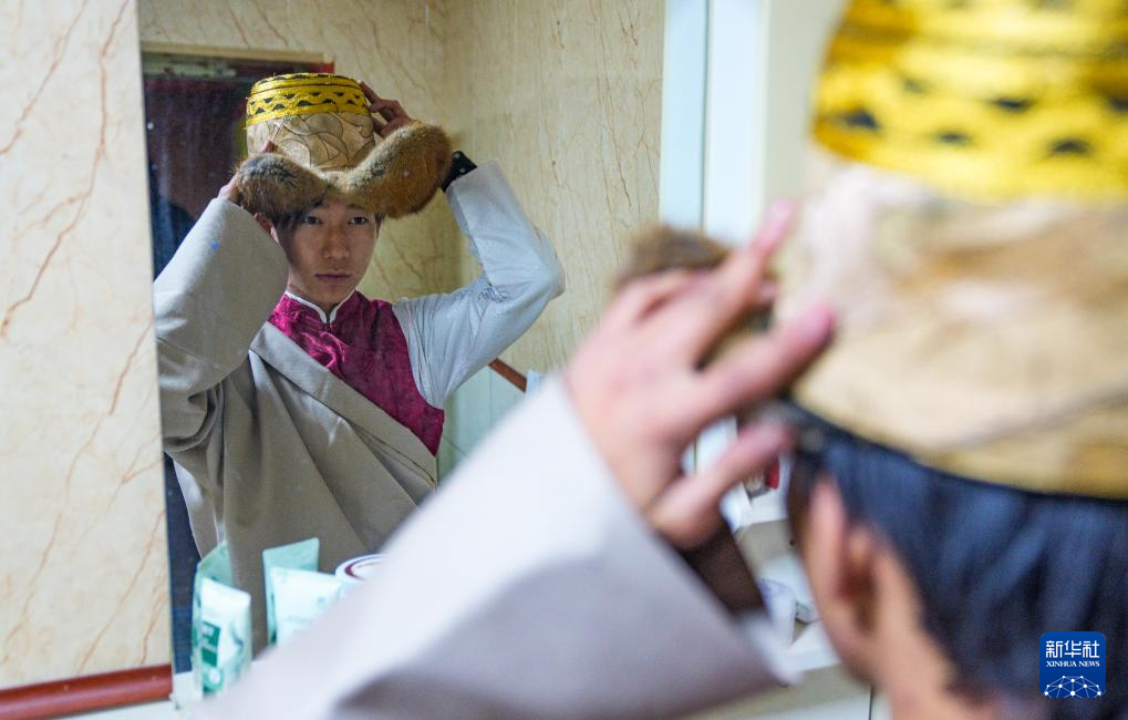 2月16日,在拉薩堆龍德慶區東嘎街道桑木社區,群群的孫子洛桑珠扎在戴帽子。新華社記者 丁增尼達 攝