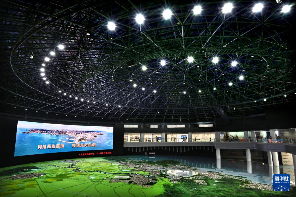 人們在青島城市展覽館內(nèi)參觀(8月17日攝,無人機照片)。