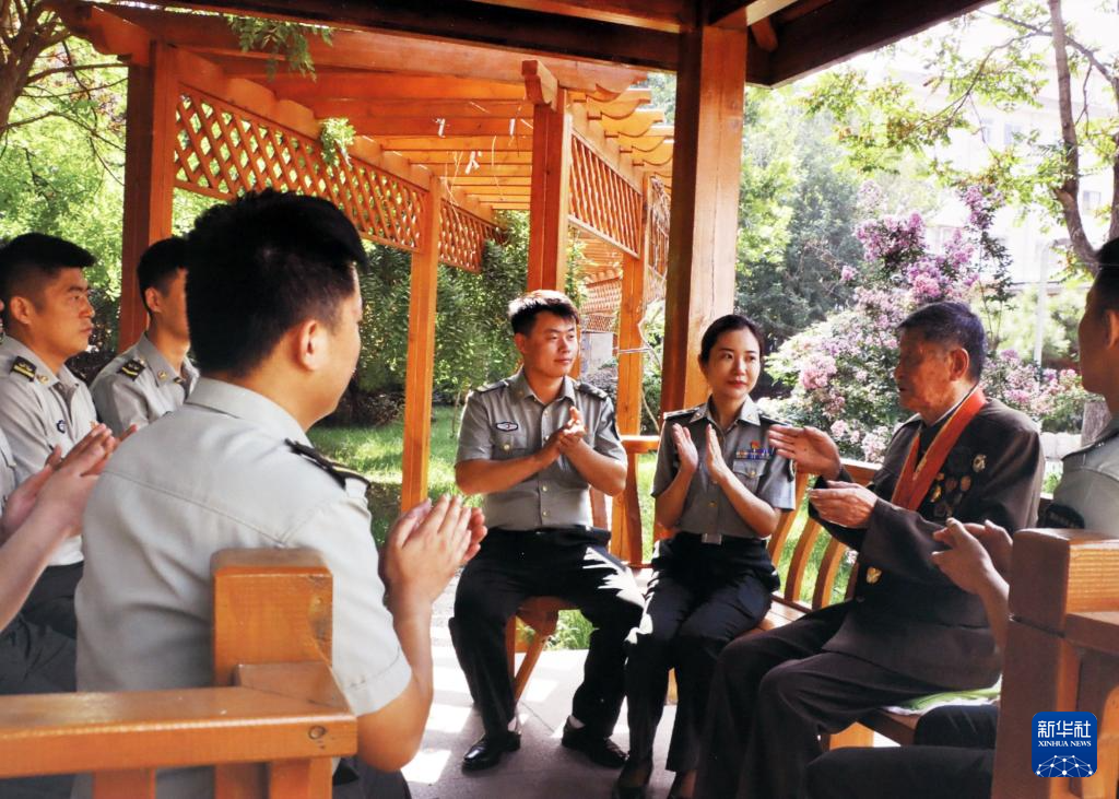 黃宗德給青年官兵講述戰斗故事(2019年7月27日攝)。新華社發(王中旺 攝)