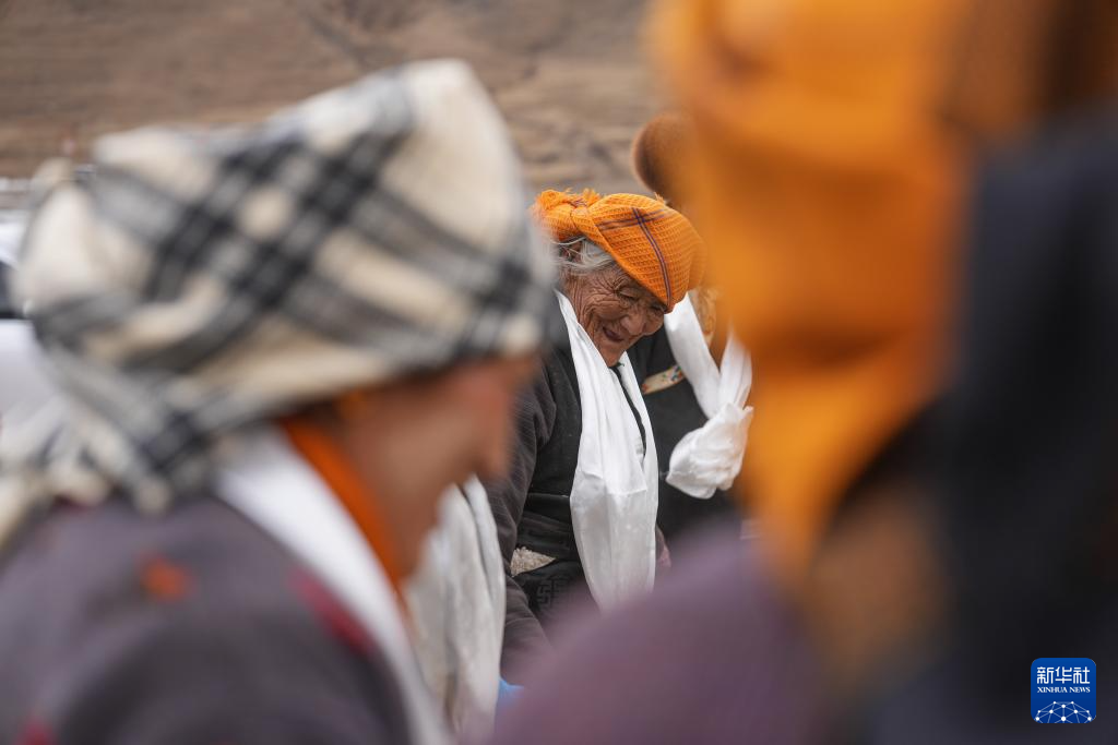 在春耕大典上,白姆老人和鄉親一起跳鍋莊(3月16日攝)。新華社記者 晉美多吉 攝
