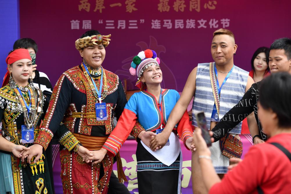 2024年4月11日,臺灣同胞在福建省連江縣小滄畬族鄉(xiāng)舉行的首屆“三月三”連馬民族文化節(jié)上表演高山族舞蹈。新華社記者 姜克紅 攝