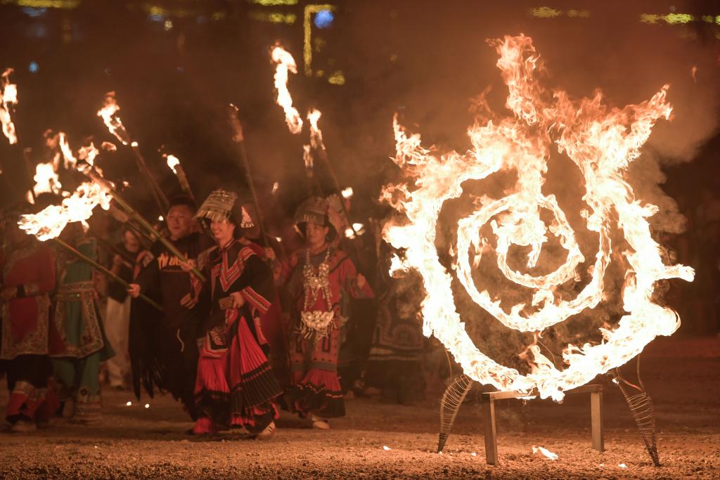 2024年7月29日,人們參加貴州省威寧縣彝族火把節(jié)活動(dòng)。新華社記者 楊文斌 攝
