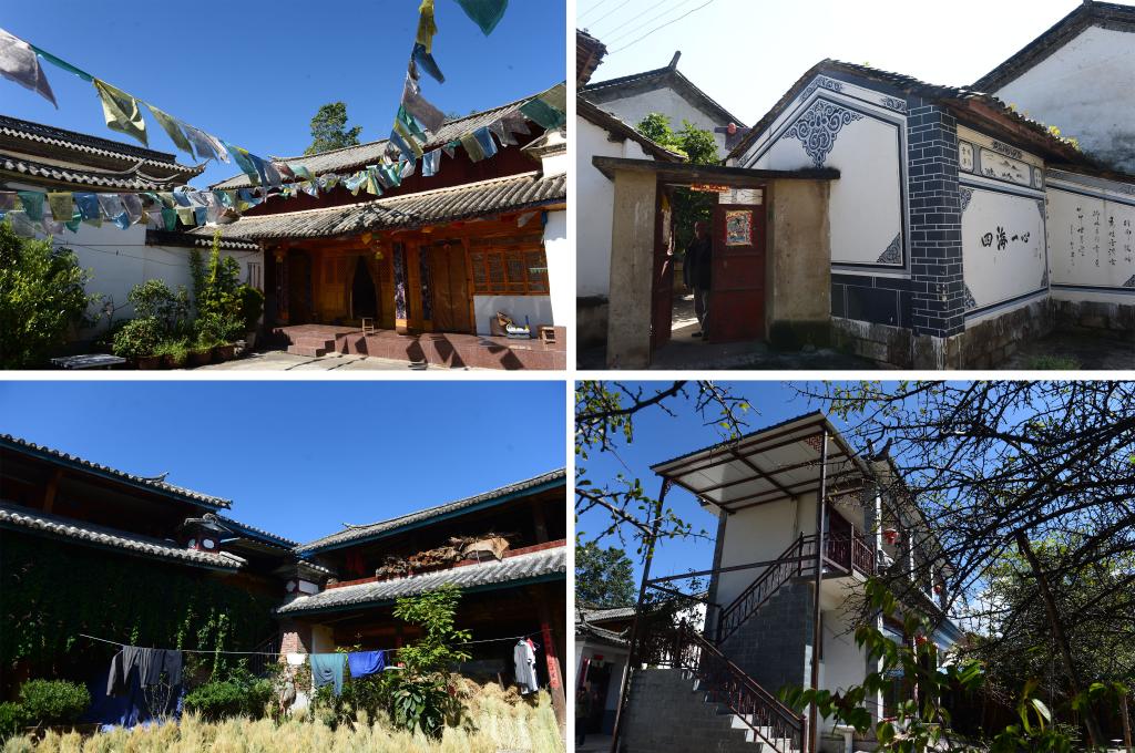拼版照片:左上為鄭家莊藏族民居,右上為鄭家莊白族民居,左下為鄭家莊漢族民居,右下為鄭家莊納西族民居(2015年10月20日攝)。云南省大理白族自治州洱源縣三營鎮(zhèn)共和村鄭家莊是一個(gè)多民族聚集的村莊,分別有漢、白、藏、傣、納西、傈僳、彝共7個(gè)民族。多年來,這個(gè)村的村民團(tuán)結(jié)互助,相互交融,和諧相處。新華社記者 胡超 攝