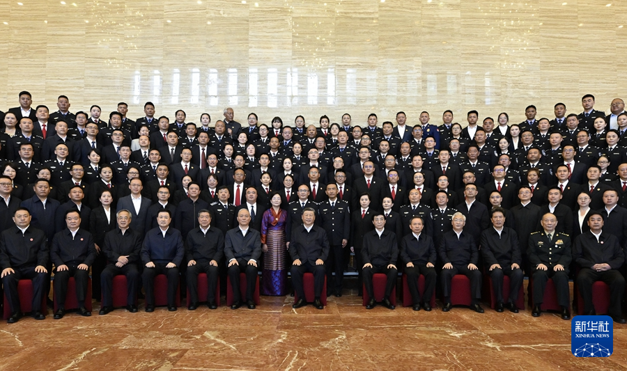 8月20日下午,中共中央總書記、國家主席、中央軍委主席習近平在拉薩親切接見西藏自治區政法干警代表,并同大家合影留念。新華社記者 殷博古 攝