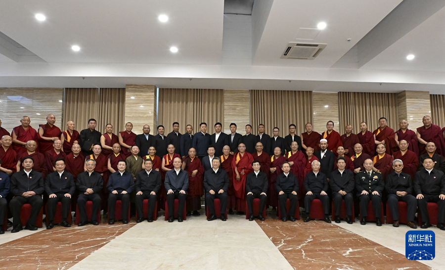 8月20日下午,中共中央總書記、國家主席、中央軍委主席習近平在拉薩親切接見西藏自治區宗教界愛國人士和寺管會干部代表,并同大家合影留念。新華社記者 李響 攝
