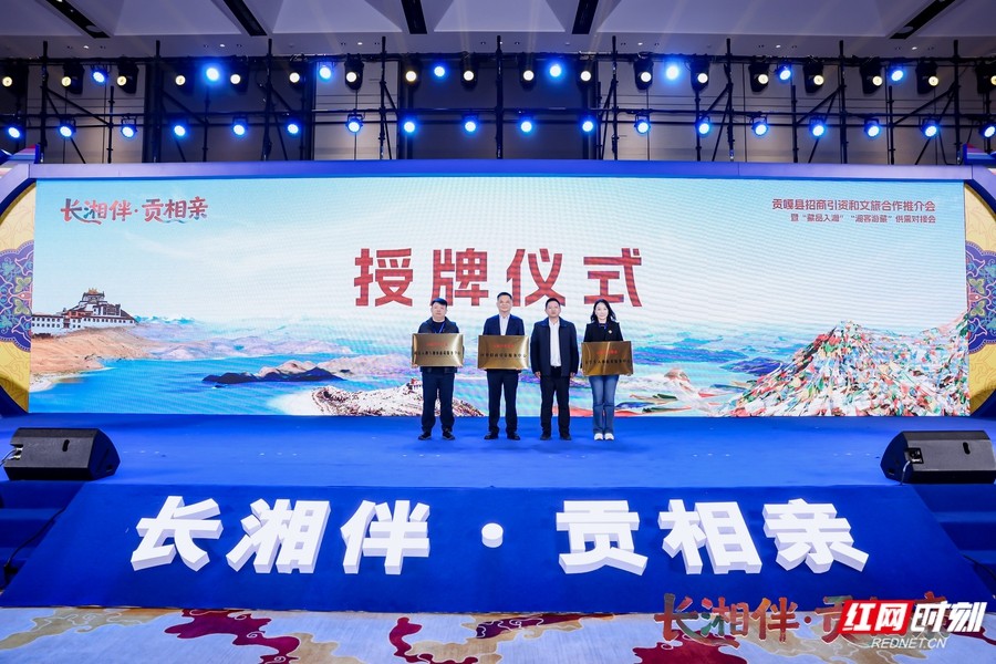 在簽約環節,貢嘎縣與多家企業就農產品采購、文旅合作達成共識。活動現場還揭牌成立“貢嘎藏品入湘與湘客游藏服務中心”“貢嘎大學生入湘就業服務中心”“貢嘎區外招商引資服務中心”,推動湘藏協作走向機制化、常態化。