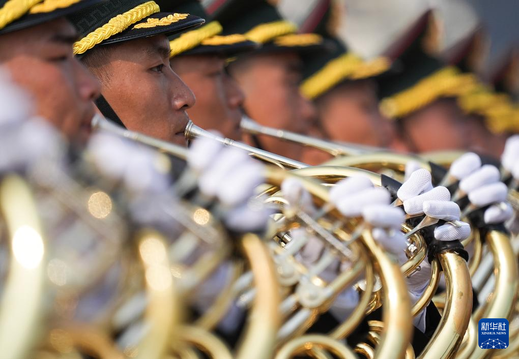 9月3日,紀念中國人民抗日戰爭暨世界反法西斯戰爭勝利80周年大會在北京隆重舉行。這是中國人民解放軍聯合軍樂團在演奏。