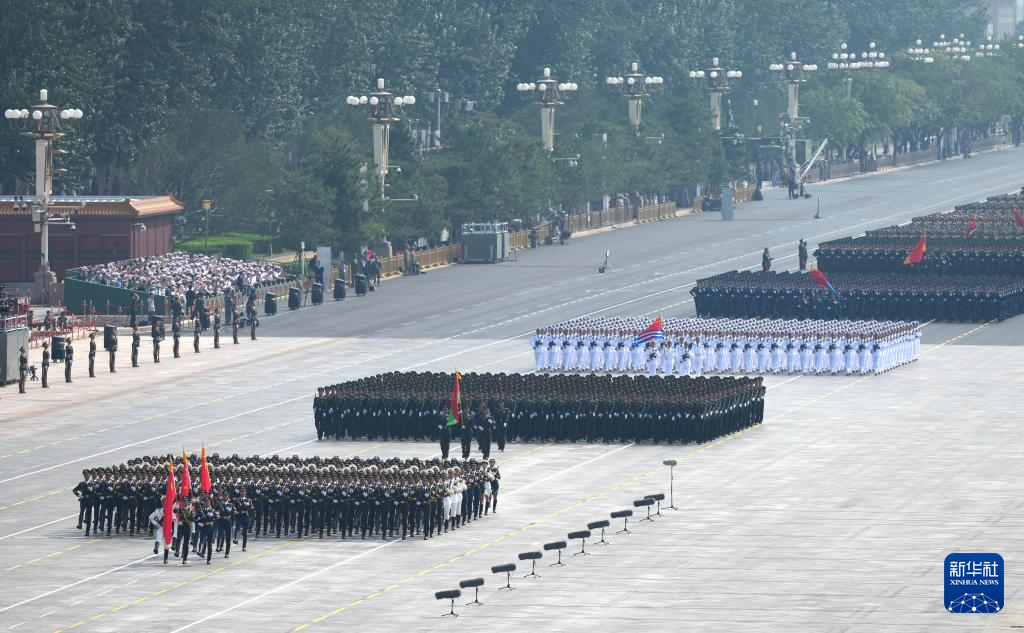 9月3日,紀(jì)念中國人民抗日戰(zhàn)爭暨世界反法西斯戰(zhàn)爭勝利80周年大會(huì)在北京隆重舉行。這是徒步方隊(duì)接受檢閱。