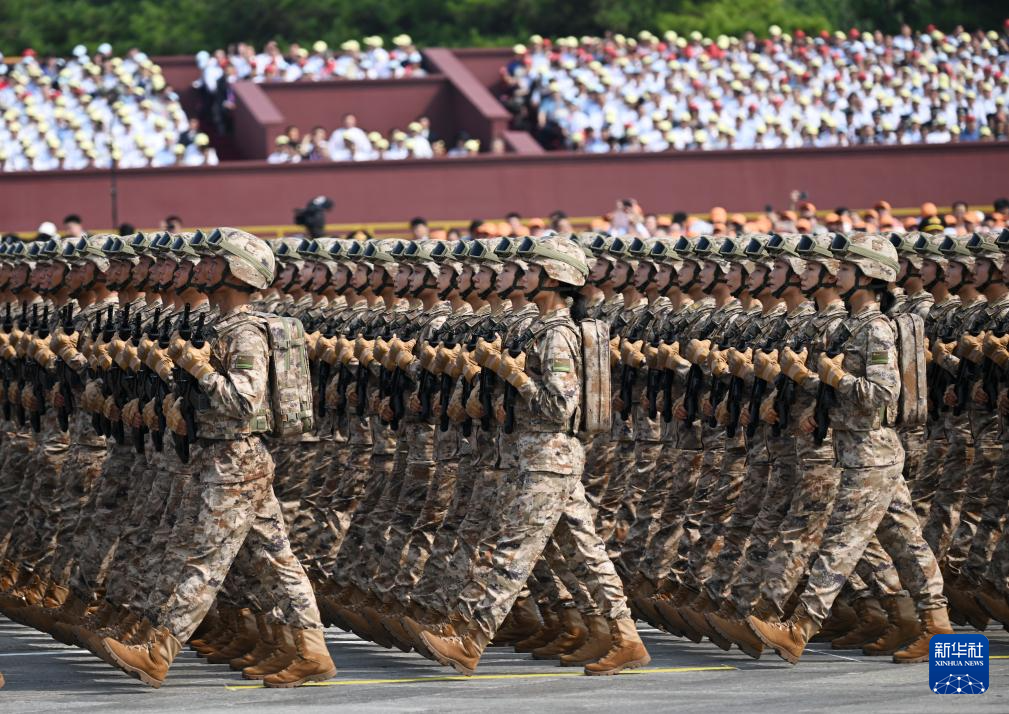 9月3日,紀(jì)念中國人民抗日戰(zhàn)爭暨世界反法西斯戰(zhàn)爭勝利80周年大會(huì)在北京隆重舉行。這是地面突擊方隊(duì)接受檢閱。