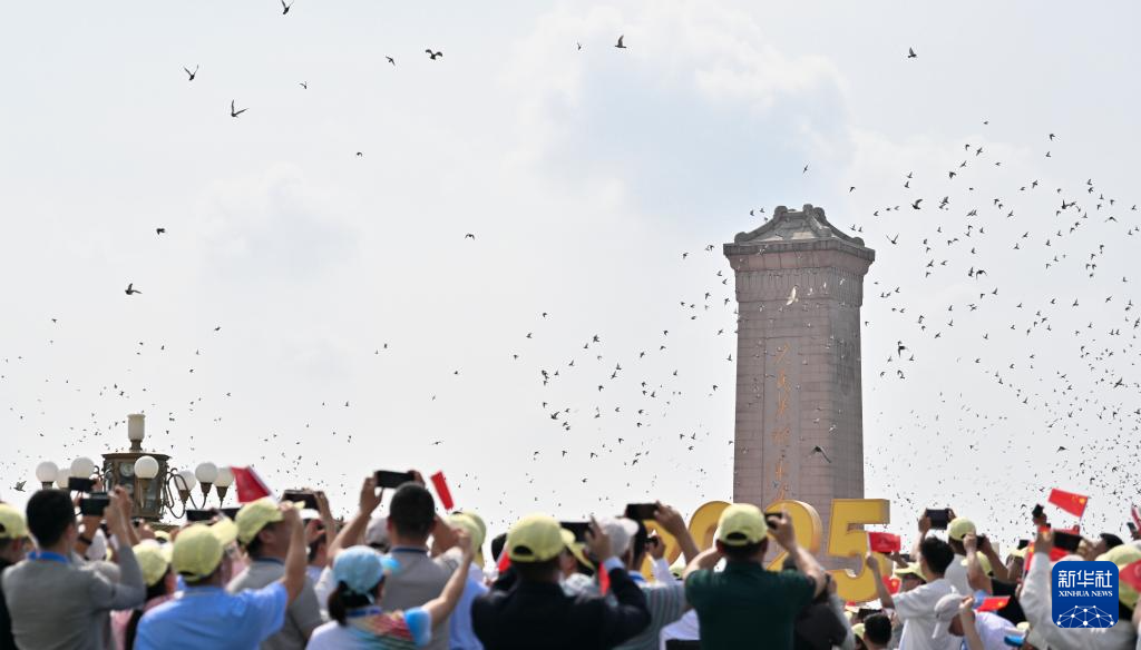 9月3日,紀(jì)念中國人民抗日戰(zhàn)爭暨世界反法西斯戰(zhàn)爭勝利80周年大會(huì)在北京隆重舉行。這是天安門廣場放飛鴿子。