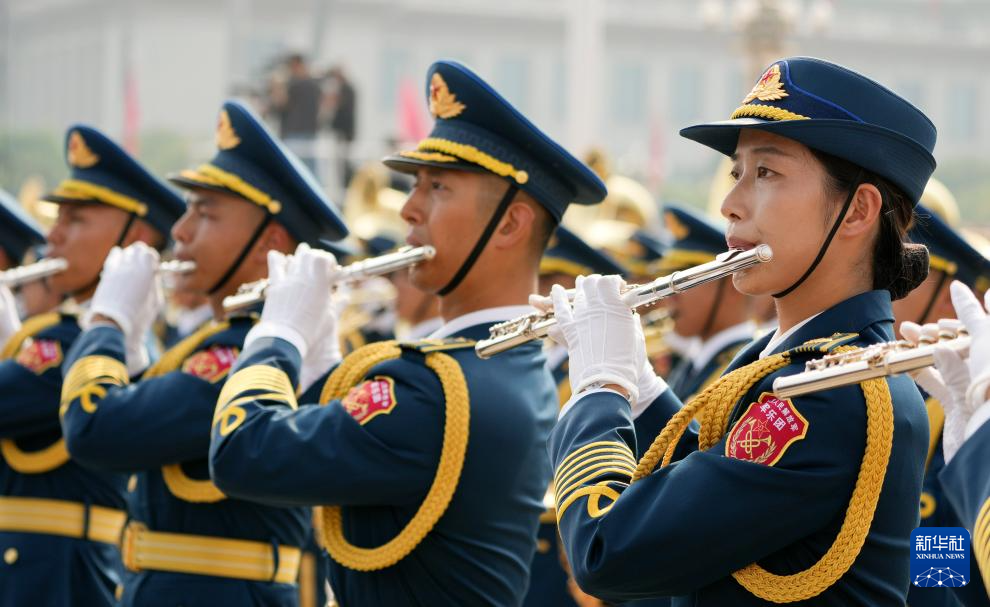 9月3日,紀念中國人民抗日戰爭暨世界反法西斯戰爭勝利80周年大會在北京隆重舉行。這是中國人民解放軍聯合軍樂團在演奏。