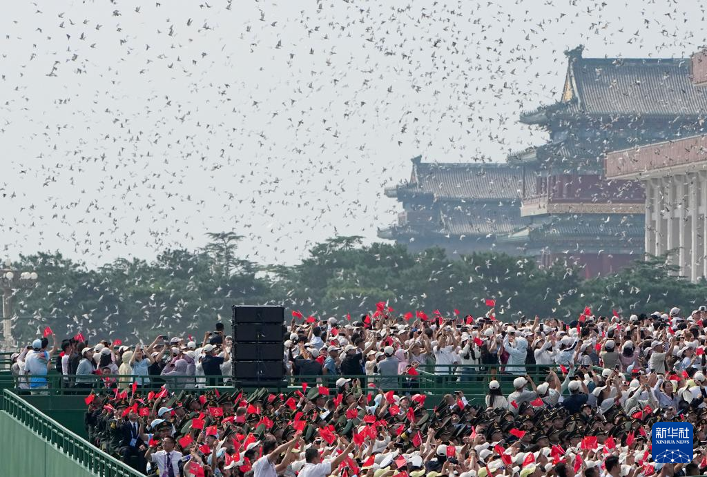 9月3日,紀念中國人民抗日戰爭暨世界反法西斯戰爭勝利80周年大會在北京隆重舉行。這是紀念大會現場放飛和平鴿。