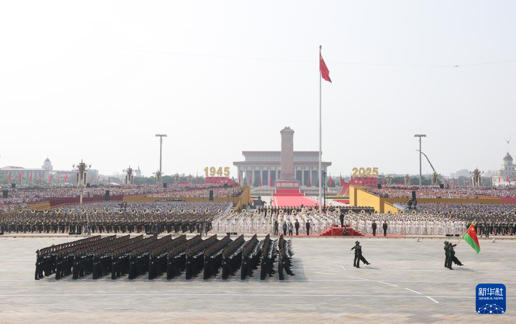9月3日,紀念中國人民抗日戰爭暨世界反法西斯戰爭勝利80周年大會在北京隆重舉行。這是中國人民解放軍儀仗方隊走過天安門廣場。