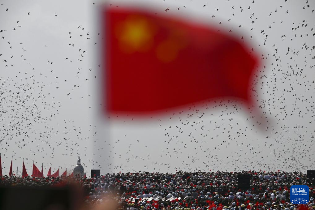 9月3日,紀念中國人民抗日戰爭暨世界反法西斯戰爭勝利80周年大會在北京隆重舉行。這是紀念大會現場放飛和平鴿。