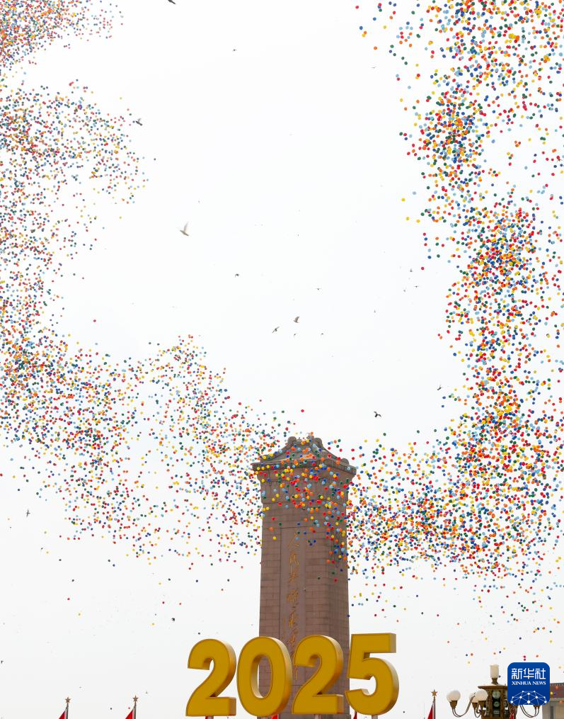 9月3日,紀念中國人民抗日戰爭暨世界反法西斯戰爭勝利80周年大會在北京隆重舉行。這是紀念大會現場放飛氣球。
