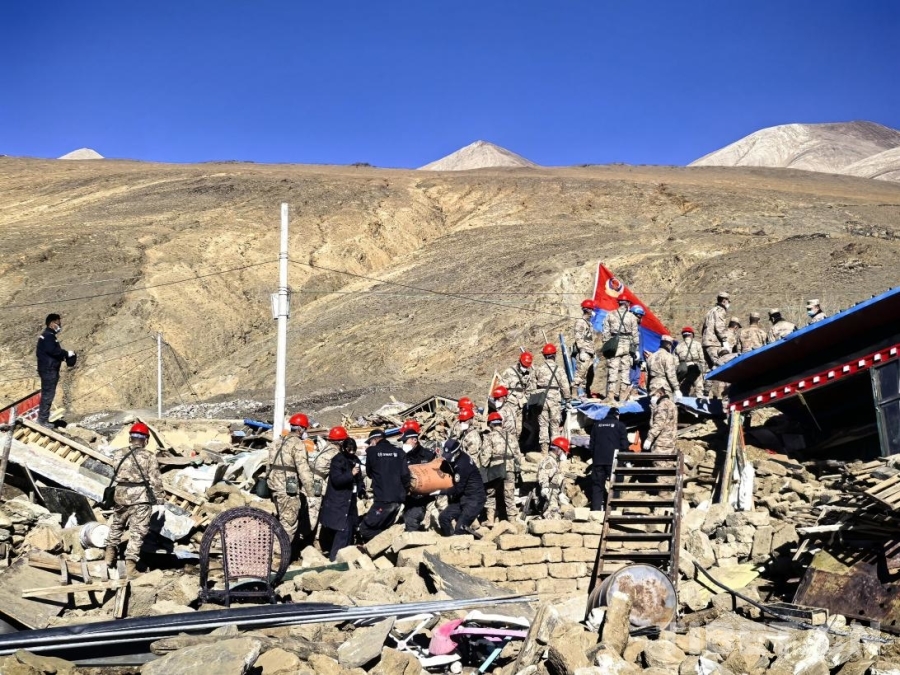 大地撕裂的瞬間,定日的山川記住了疼痛。這些影像定格了災難降臨時的原始模樣——倒塌的房屋、揚起的塵土、撕裂的大地。但在滿目瘡痍中,更震撼的是那些逆行身影:人民子弟兵、消防救援隊伍、移民管理警察、公安干警與當地干部在廢墟上的緊急救援,一雙雙沾滿泥土的手在瓦礫中尋找生命的跡象。災難過后,是無數人日夜兼程奔赴的開始。