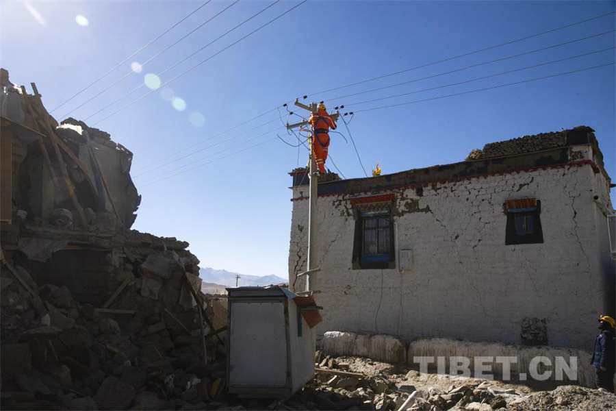 圖為地震發生第三日,在定日縣長所鄉森嘎村國家電網工作人員為受災群眾安置點恢復電力供應(攝于2025年1月9日) 攝影:趙振宇