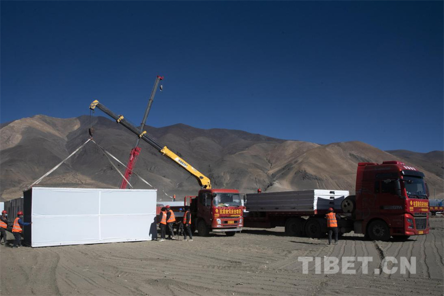 圖為地震發生第三日,在定日縣長所鄉森嘎村全國各地支援而來的活動板房開始搭建,10分鐘一間的“中國速度”正在這里上演(攝于2025年1月9日) 攝影:趙振宇