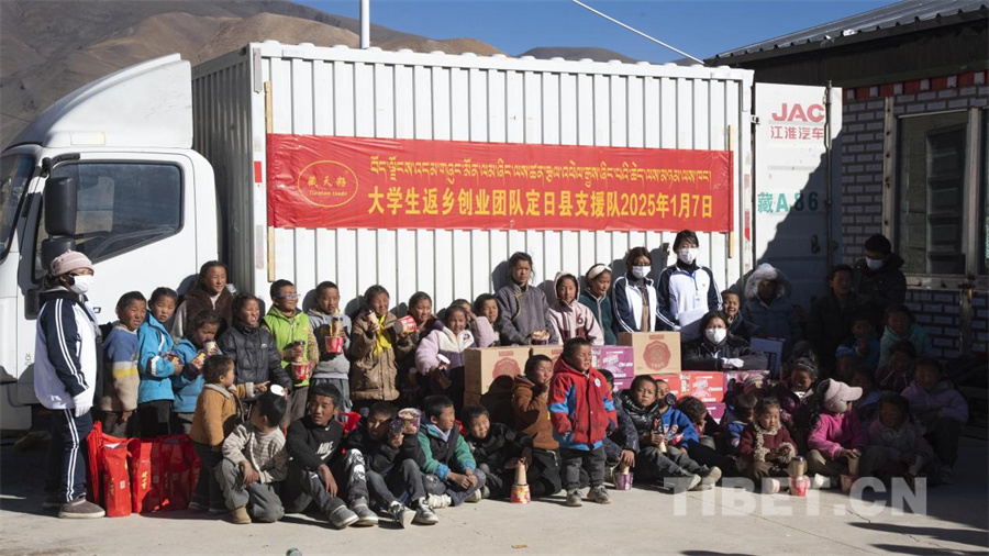 圖為拉薩市當雄縣烏瑪塘鄉巴嘎村“00后”返鄉創業大學生自發赴定日縣捐贈物資(攝于2025年1月8日) 攝影:趙振宇