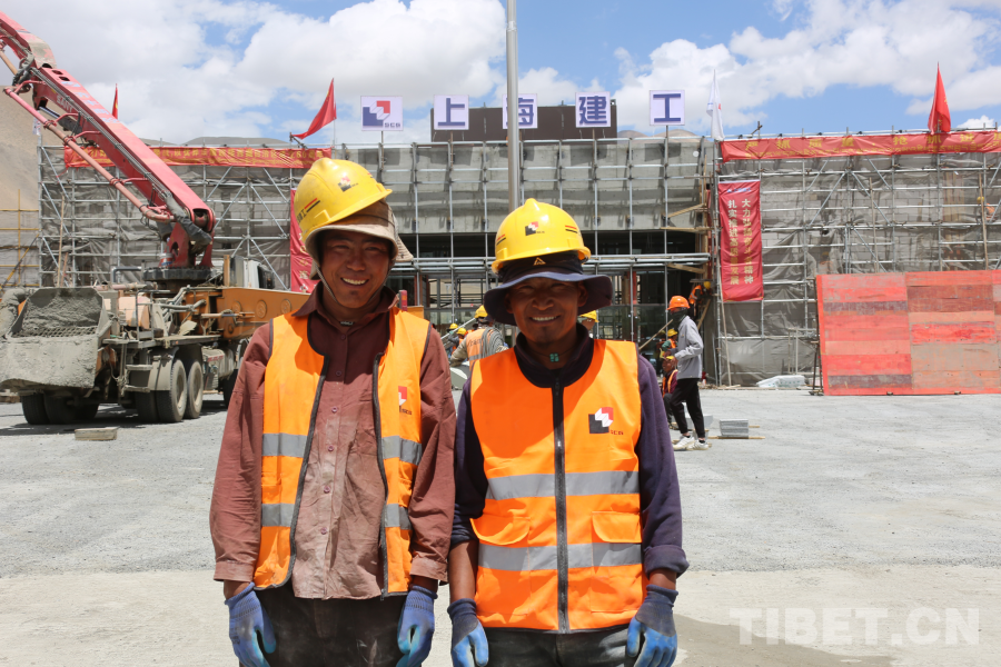 圖為森嘎村災后重建現場,森嘎村村民米瑪(左)和頓珠(右)參與以工代賑項目,用自己的雙手建設家園(攝于2025年6月15日)攝影:旦曲