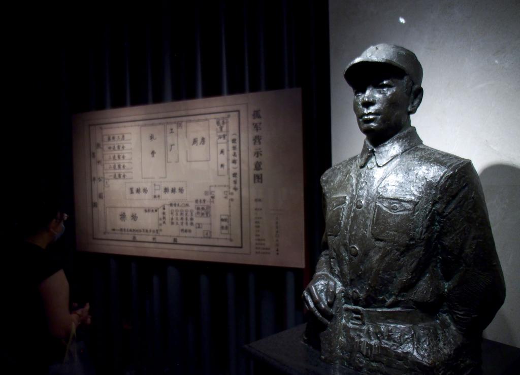 這是在上海四行倉(cāng)庫(kù)抗戰(zhàn)紀(jì)念館拍攝的謝晉元銅像(2020年8月25日攝)。新華社記者 任瓏 攝