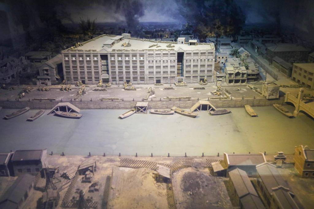 這是在上海四行倉(cāng)庫(kù)抗戰(zhàn)紀(jì)念館拍攝的還原四行倉(cāng)庫(kù)歷史場(chǎng)景的模型(2021年9月16日攝)。新華社記者 王翔 攝