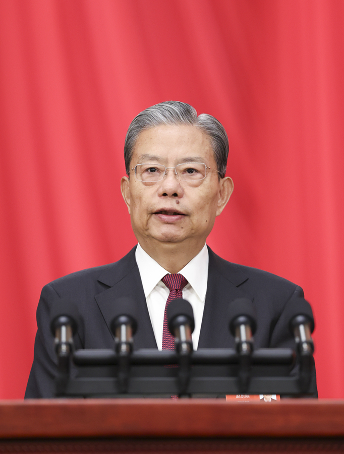 3月8日,十四屆全國人大三次會議在北京人民大會堂舉行第二次全體會議。受全國人大常委會委托,趙樂際委員長向大會報告全國人大常委會工作。新華社記者 丁海濤 攝