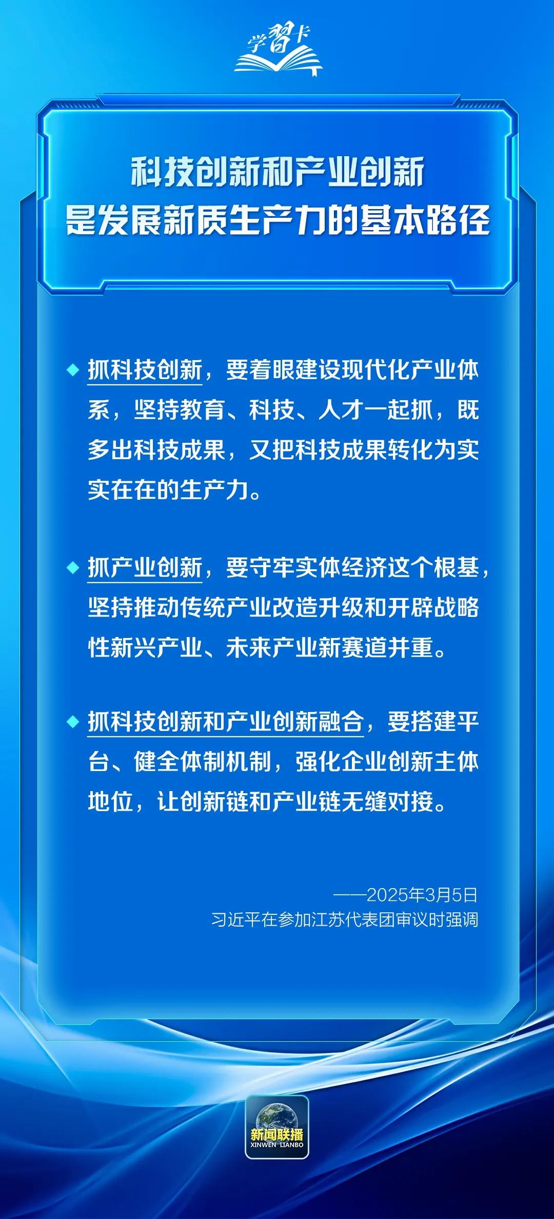 2025年全國兩會期間,習(xí)近平總書記參加團(tuán)組審議討論時,多次提到科技創(chuàng)新這一關(guān)鍵命題,強(qiáng)調(diào)“科技創(chuàng)新和產(chǎn)業(yè)創(chuàng)新,是發(fā)展新質(zhì)生產(chǎn)力的基本路徑”。一起學(xué)習(xí)↓
