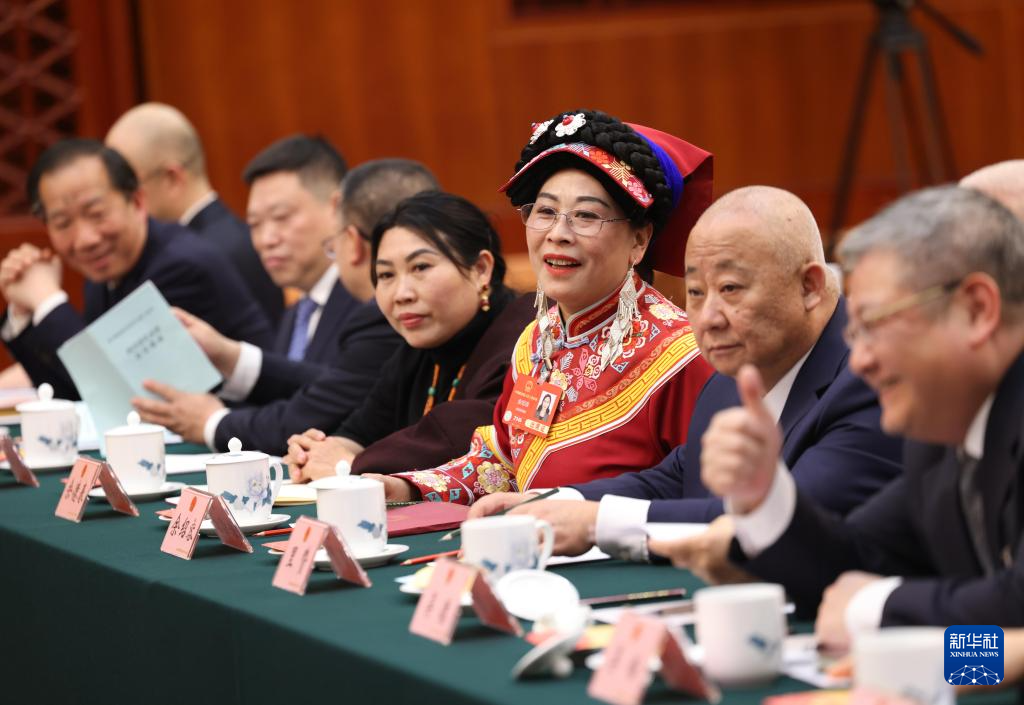 3月5日,代表們在四川代表團全體會議前交談。當日下午,十四屆全國人大三次會議各代表團舉行全體會議,審議政府工作報告。新華社記者 劉衛兵 攝