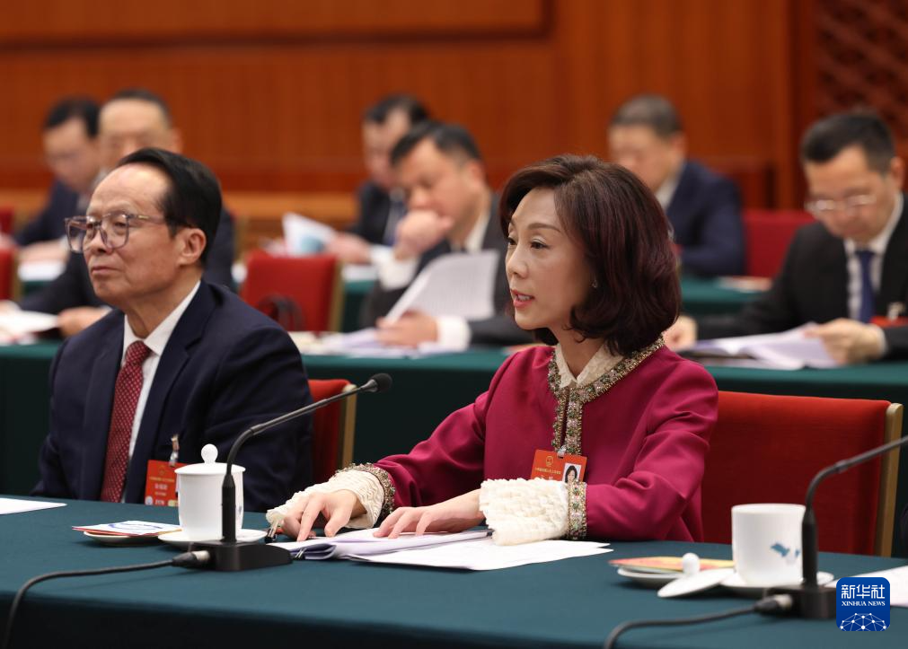 3月5日,全國人大代表袁姝在貴州代表團全體會議上發言。當日下午,十四屆全國人大三次會議各代表團舉行全體會議,審議政府工作報告。新華社記者 翟健嵐 攝