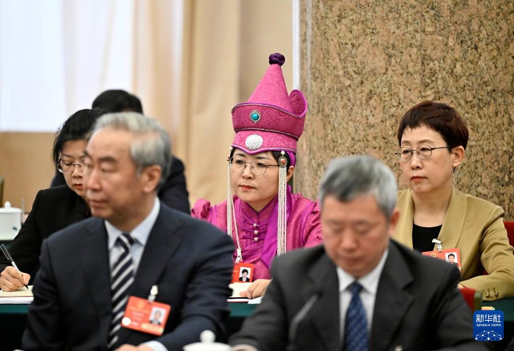 3月5日,代表們在遼寧代表團全體會議上認真聽取發言。當日下午,十四屆全國人大三次會議各代表團舉行全體會議,審議政府工作報告。新華社記者 殷博古 攝
