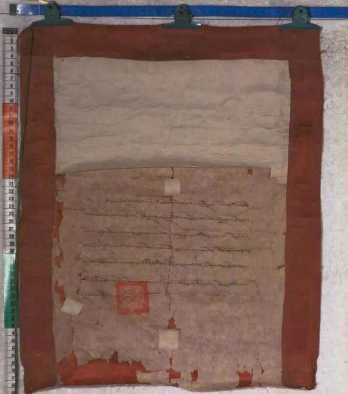 這類附著于文告的標識,與其正文共同構成了完整的檔案實體,清晰地將文書權威與“第六輩達賴喇嘛倉央嘉措”這一身份緊密關聯,為倉央嘉措的政教身份與職權行使,提供了不可多得的原始實物證據。