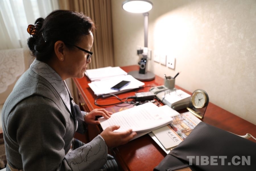 3月5日下午,在代表駐地,全國人大代表、西藏自治區高原生物研究所植物組織培養研究室主任尼珍正在工作。當日上午9時,十四屆全國人大四次會議在人民大會堂舉行了開幕會。