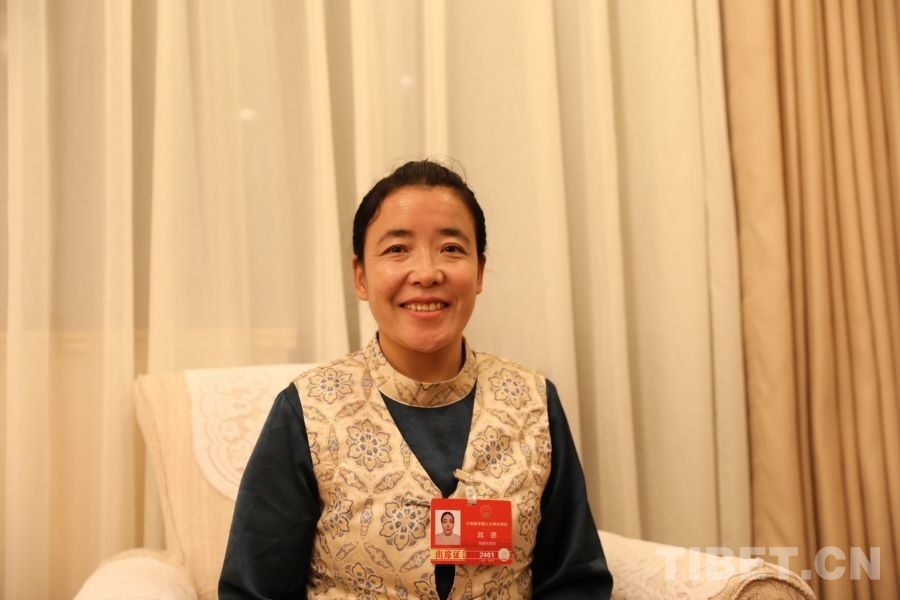 3月5日晚,在代表駐地,全國人大代表、西藏自治區那曲市巴青縣江綿鄉坡榮塘村黨支部書記其德,向記者講述民生改善給家鄉帶來了許多變化。