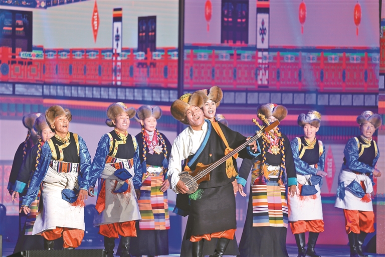 在浪卡子縣皖江劇院,紀(jì)念西藏民主改革67周年暨慶祝山南市撤地設(shè)市10周年文藝晚會(huì)正在上演。開(kāi)場(chǎng)舞《吉祥彩秀》的演員們身著盛裝,揮舞著絢麗靈動(dòng)的彩袖,瞬間點(diǎn)燃全場(chǎng)。紅歌聯(lián)唱《雪域歡歌頌黨恩》將經(jīng)典紅色旋律與藏語(yǔ)原創(chuàng)歌曲巧妙結(jié)合,帶領(lǐng)觀眾重溫那段波瀾壯闊的歷史。小品《在崗新春答卷》取材于基層干部的真實(shí)事跡,詼諧幽默的表演背后,是扎根一線、為民服務(wù)的責(zé)任擔(dān)當(dāng)。